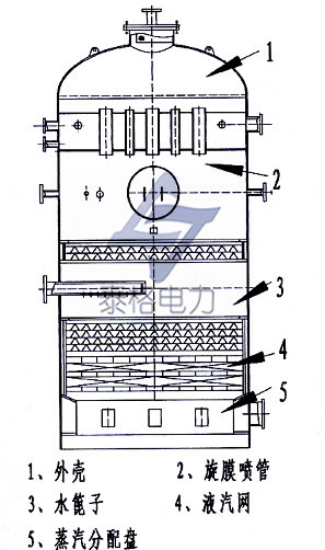 CY-系列新型旋射膜式除氧器型號由漢語拼音字母和除氧器的主要特性數(shù)據(jù)(處理水量T/H)二部分組成。例如:CY-225T/H表示處理水量225T/H的低壓旋膜式除氧器。
